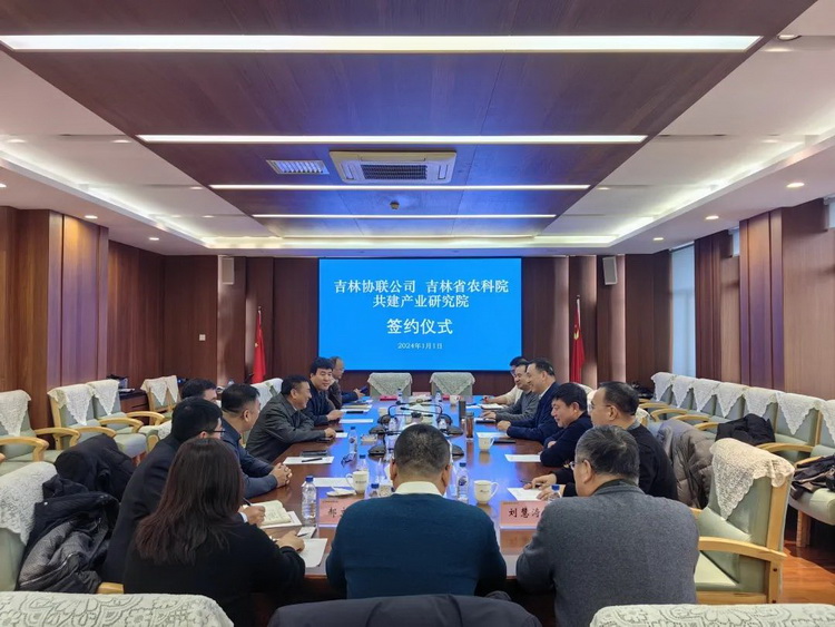 024年1月1日,新年伊始,吉林協聯農業科技有限公司與吉林省農業科學院共建“吉林鹽堿地綜合利用產業研究院(鎮賚)”簽約儀式在吉林省農業科學院舉行。吉林省農業科學院院長、黨委書記馬國成,副院長牟忠生,科技成果轉化處處長宋詩學,水稻研究所所長侯立剛等10位領導和專家,鎮賚縣委常委、副縣長邰國文,江蘇國信協聯能源有限公司黨委書記、董事長宗偉剛,吉林協聯生物科技有限公司執行董事王立軍,總工程師李闖等參加簽約儀式。會議由吉林省農業科學院副院長牟忠生主持。